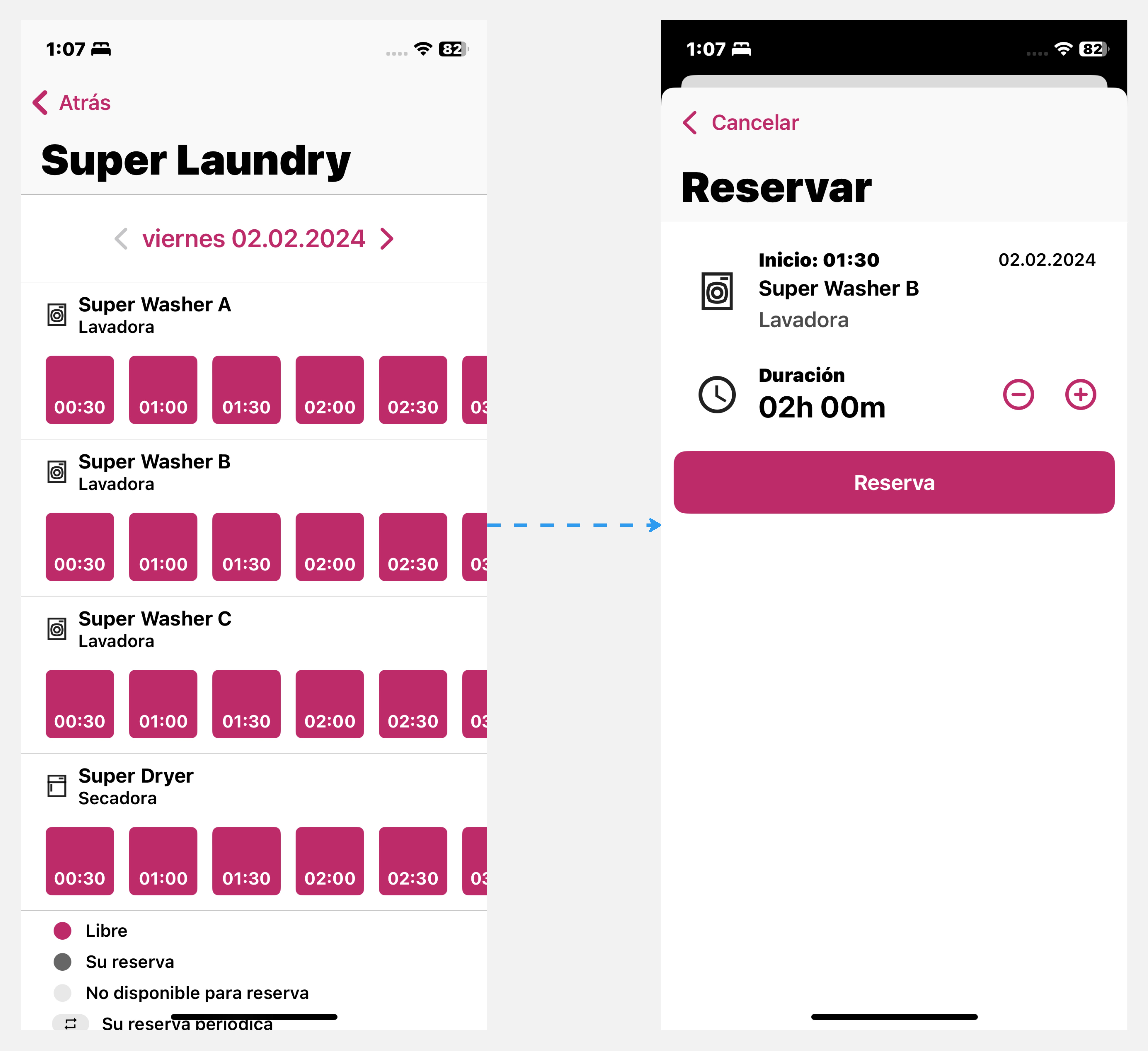 - Su reserva: la máquina está reservada para usted.