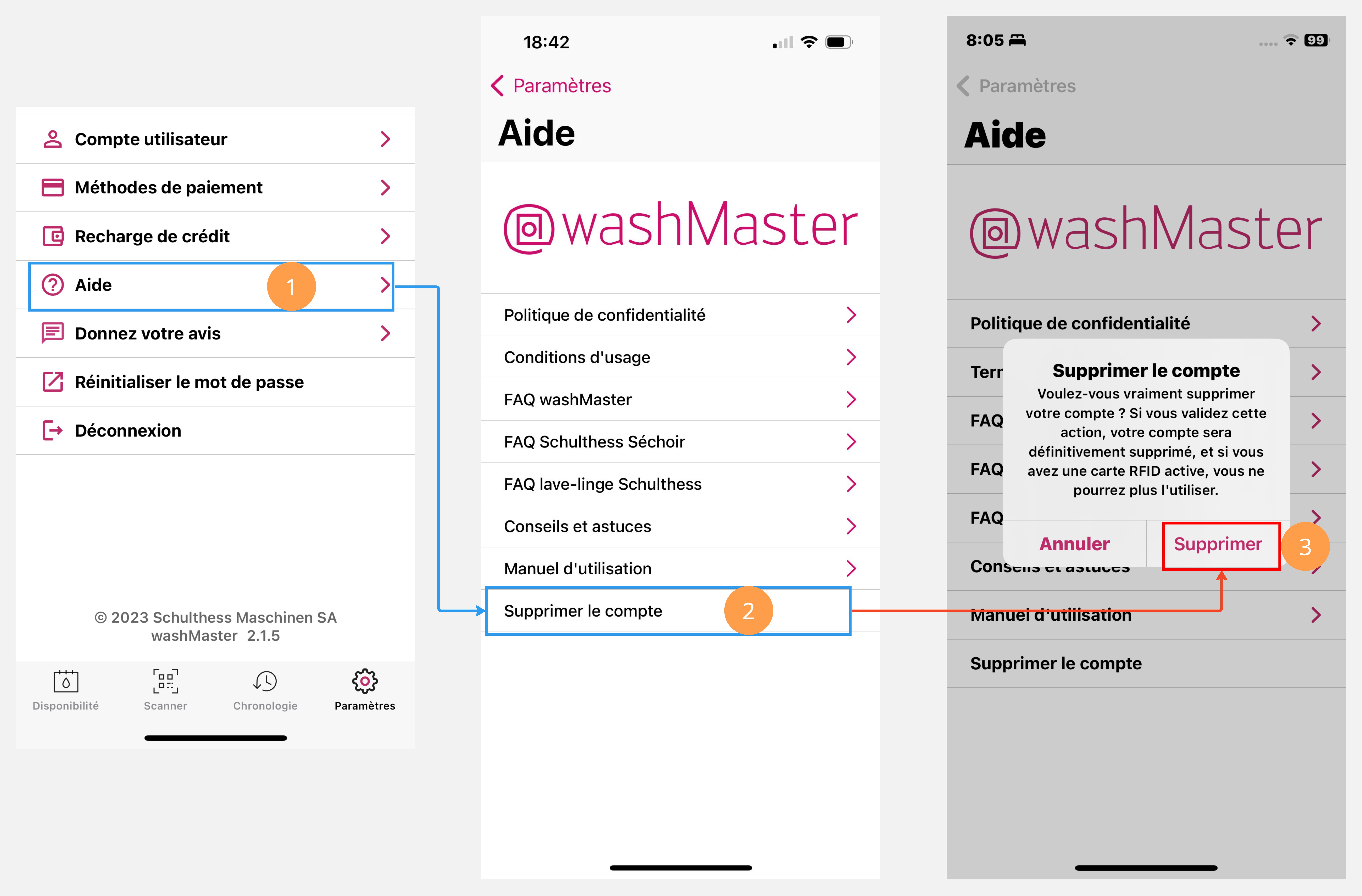 Vous pouvez supprimer votre compte washMaster si vous n'en avez plus besoin.
