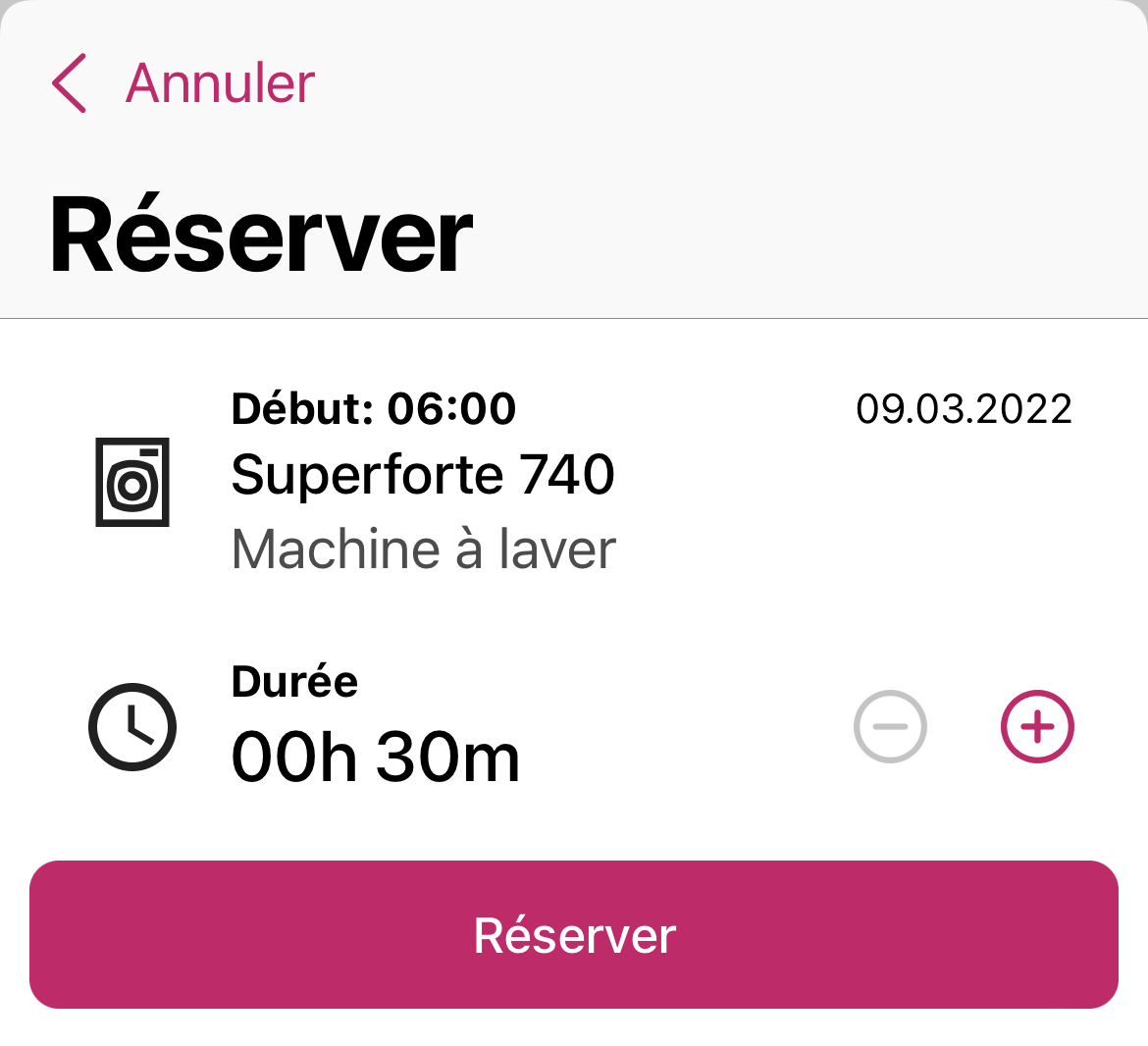 - Votre réservation: la machine est réservée pour vous.