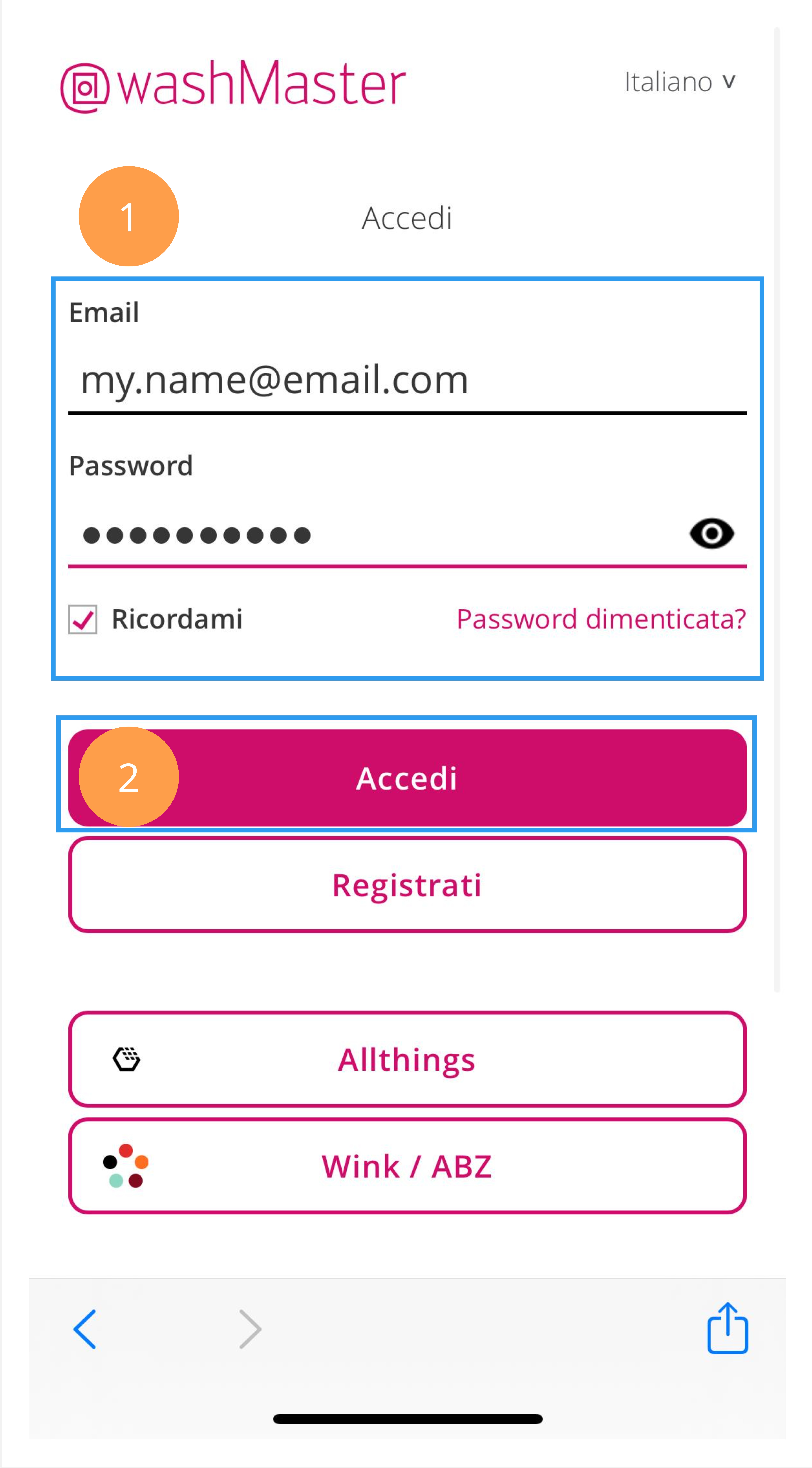 Seguite questi semplici passi per registrarvi nel washMaster: