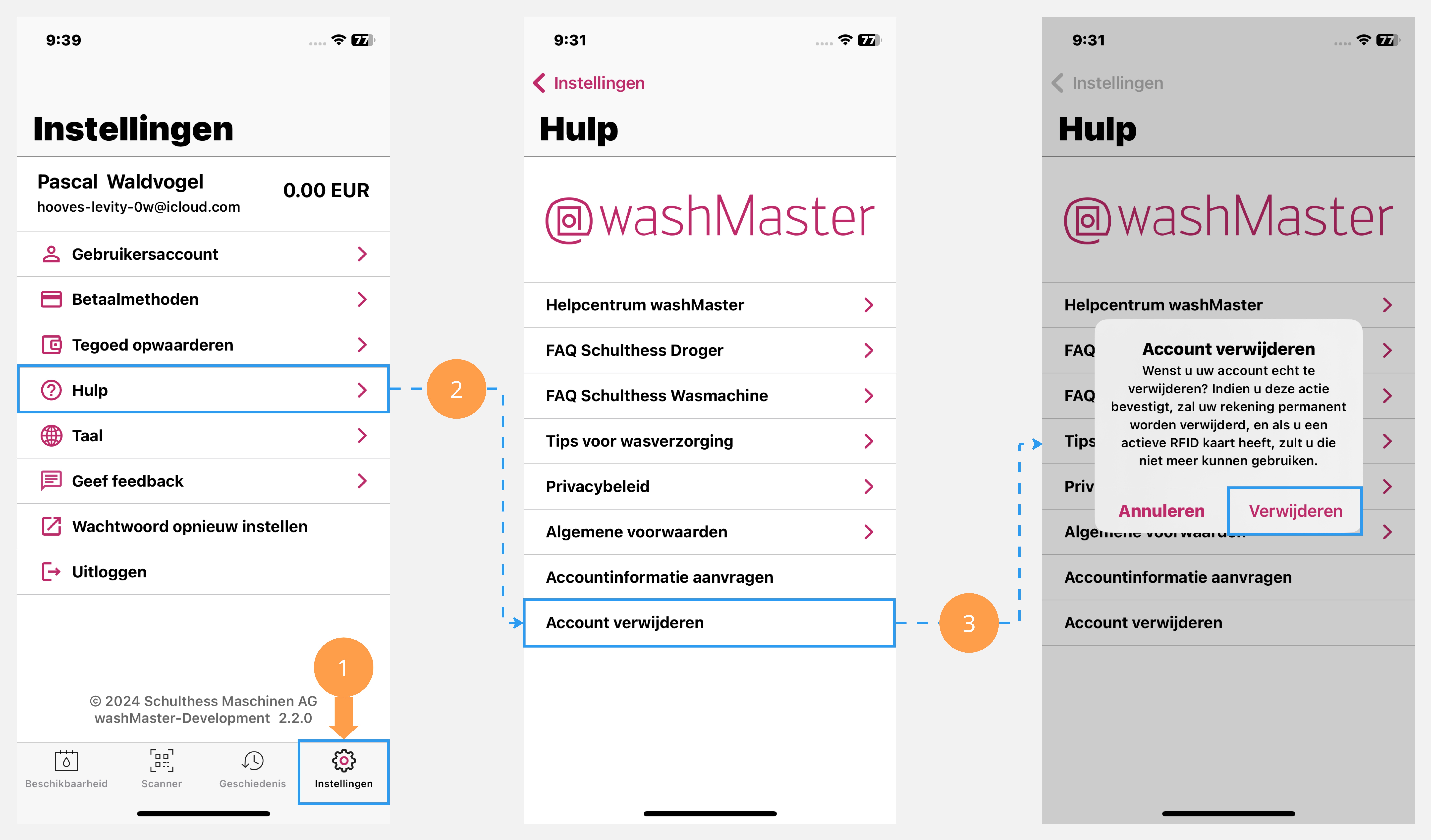 U kunt uw washMaster-account verwijderen als u het niet langer nodig heeft.