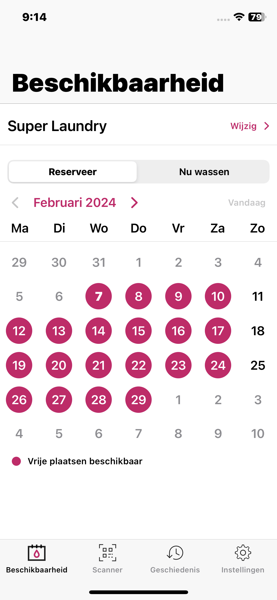 Wanneer de «📅 Kalenderfunctie » is geactiveerd door uw exploitant, kunt u een machine reserveren onder de optie « Beschikbaarheid ». Daar ziet u op welke dagen er nog plaatsen beschikbaar zijn. Klik op de gewenste beschikbare datum en reserveer een geschikt tijdslot.