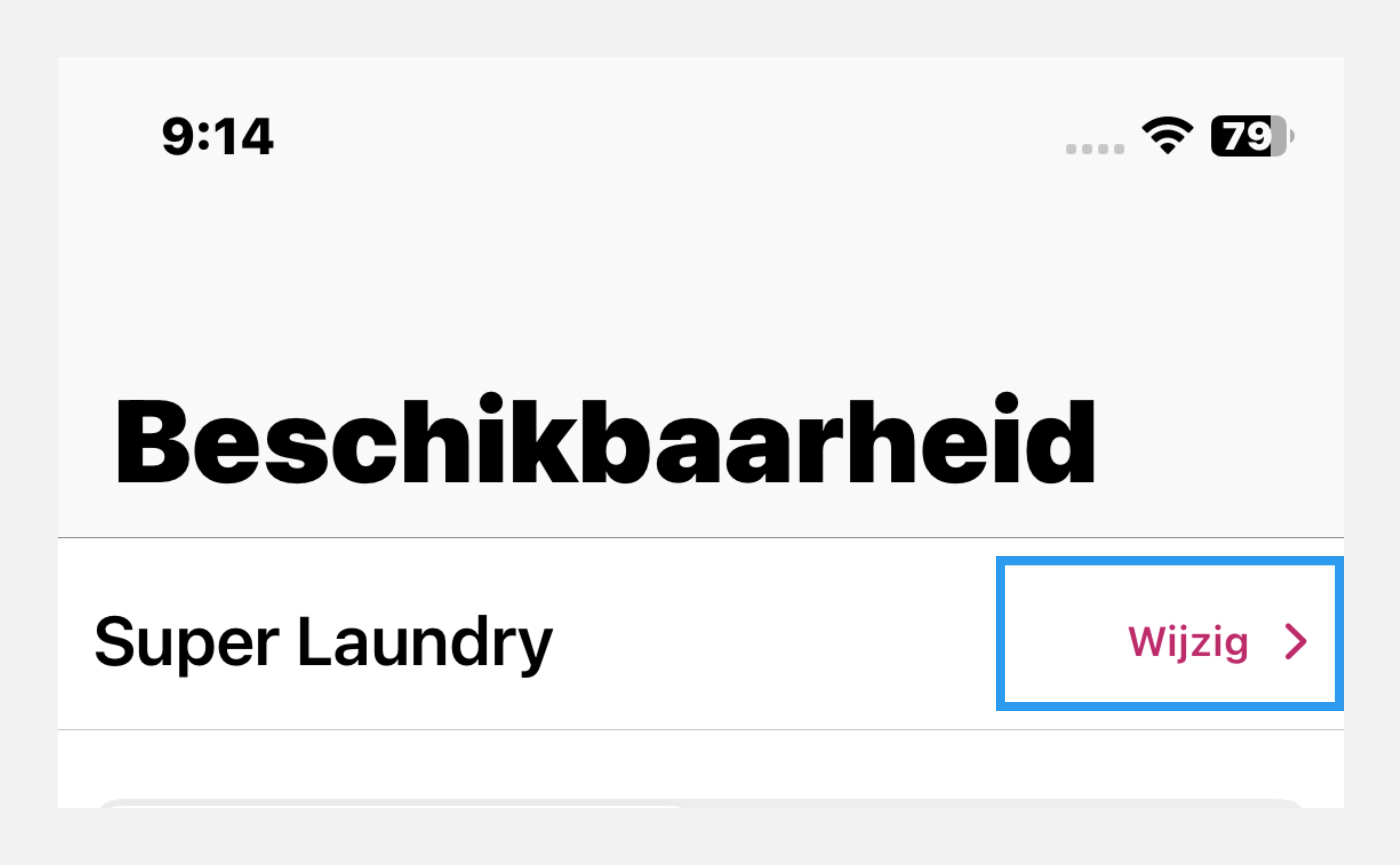 Als u aan meerdere wasserettes bent toegewezen, kunt u van wasserette veranderen door rechtsboven op « Wijzig » te klikken: